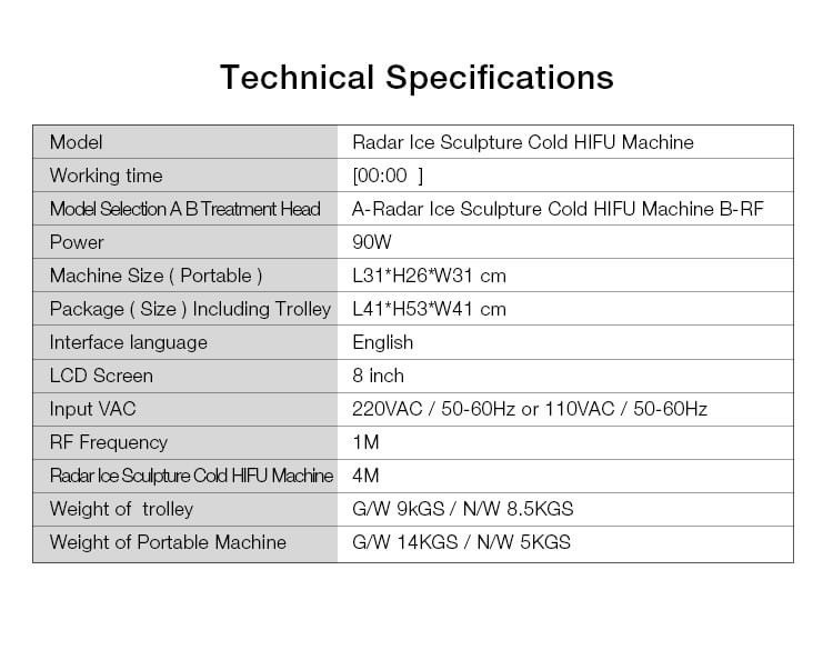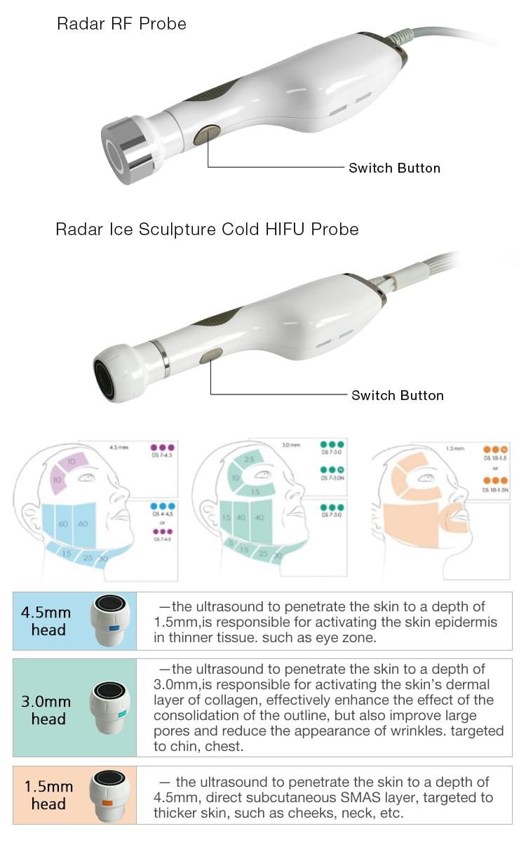 Technology: Radar line Screen: 8 Inch Touch Screen Target Area: Face, Neck Number of Handles: Dual Handle Operation System: High Frequency