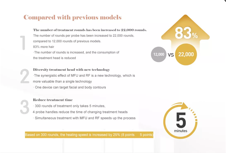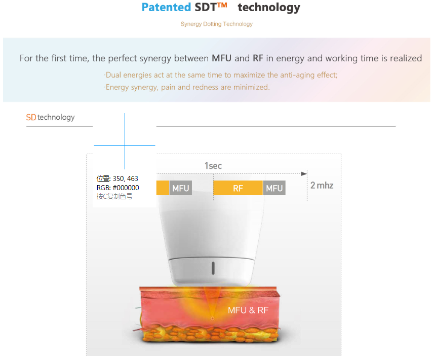 MFU is a type of ultrasound. Ultrasonic waves refer to waves with frequencies stands for Micro Focused High Ultra Ultrasound and can generate thermal effect in human tissues by focusing high intensity ultrasound on one point. It was originally used to destroy tumors and cancer cells without incision, but nowadays it is also applied to Elasticity/Lifting equipment.