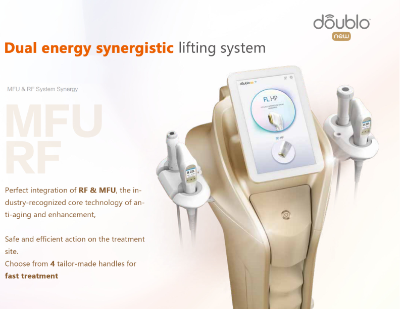 ‘NEW DOUBLE’ is an equipment with a new concept that combines both MFU and RF(Radio Frequency) technology in order to include all of the functionalities to create a V-line shaped face.