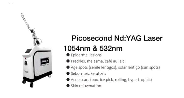 Rox Anderson and John Parrish, “the principle of selective photothermolysis”, the shorter the laser action time, the target tissue to absorb the accumulation of laser energy is less likely to spread to the surrounding tissue, the energy was limited extent In the target treatment needs to protect the surrounding normal tissue, so the treatment of the stronger the selectivity. Picosecond laser pulse width is only one hundredth of the traditional Q-switched nanosecond laser, its excellent performance to ensure that picosecond laser pulse crushing of pigment particles more thoroughly, while the surrounding tissue damage.nd yag laser 532nm 1064nm 755nm pico pico laser Q-switched, Pico laser machine.