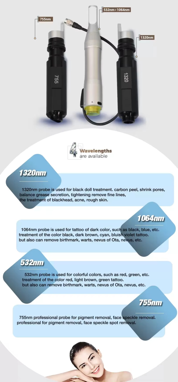 Versatile Applications: Equipped to handle a wide range of aesthetic concerns, from multi-colored tattoos to various benign pigmented lesions and skin rejuvenation.